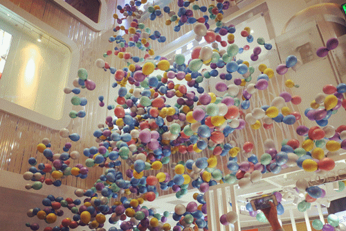 当成千上万个五彩的气球从天而降,既浪漫又曼妙,气球中还藏着各种惊喜礼品小券券从天而降!天啊,这该是多么梦幻而开心浪漫的事情!