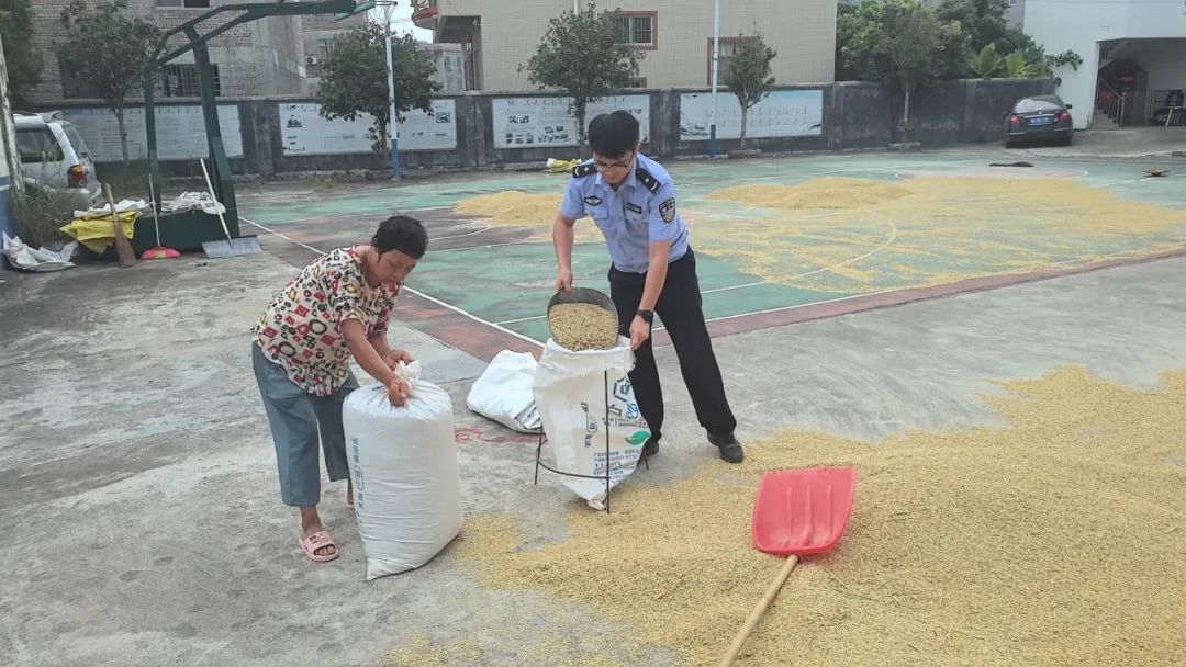 “来派出所这晒粮真的很方便,我们的工具用完就放旁边,也不会担心丢失,派出所的同志有空还帮我翻晒,还给我们准备了降暑的绿豆粥,真的是很暖心。”近日,在罗播派出所民警辅警的帮助下,村民李大哥将晒好的新谷收拢装袋。看着满仓晒好的粮食,李大哥露出了欣慰的笑容,连赞派出所这项为民举措实在。据了解,李大哥一家承包了5亩多水田,每季收获约4千斤稻谷。十多年来,李大哥家每季收获的稻谷全部都在罗播派出所大院完成晾晒。